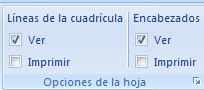 Ver líneas de la cuadrícula. Muestra las líneas entre filas y columnas de la hoja para facilitar la edición y la lectura. Estas líneas no se imprimirán a menos que también se seleccione Imprimir.